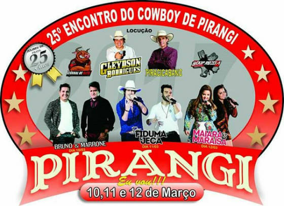 O Encontro do Cowboy de Pirangi comemora 25 anos de realização com shows de grandes atrações nacionais. Os organizadores também divulgam informações como data e local da festa este ano.
