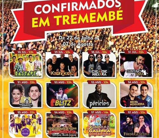 O evento, tradicional na região, reúne atrações musicais de peso e uma programação religiosa. Neste ano, a realização será entre 22 de julho e 07 de agosto.