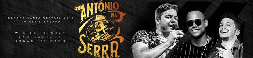 As atrações escaladas para animar o Seu Antônio na Serra na Semana Santa de 2019 são Wesley Safadão, Léo Santana e Jonas Esticado.